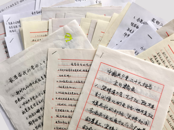 為進(jìn)一步加深黨員職工對黨的二十大報告的學(xué)習理解,推進(jìn)黨的二十大精神進(jìn)頭腦、進(jìn)思想,2022年11月26日至12月10日,公司黨委組織開(kāi)展“最感奮我的黨的二十大報告金句”推薦活動(dòng)。 通知一經(jīng)下發(fā),雖處疫情居家辦公期間,但大家的積極性絲毫不受影響。公司領(lǐng)導班子成員率先垂范,結合參加國務(wù)院國資委培訓中心學(xué)習貫徹黨的二十大精神網(wǎng)絡(luò )培訓班學(xué)習收獲,原原本本學(xué)習黨的二十大報告原文,共推薦金句112條。黨員職工認真學(xué)習黨的二十大報告,深刻理解報告中的新論斷、新要求、新部署,懷著(zhù)崇敬的心情,一字一句工整地抄寫(xiě)著(zhù)金句,并表示,作為國企職工,要深入學(xué)習貫徹黨的二十大精神,立足本職、積極工作。十分公司王帥表示,通過(guò)摘抄黨的二十大報告金句,又是一次原原本本學(xué)習,通過(guò)抄寫(xiě),對報告內容又有新理解、新收獲,中國共產(chǎn)黨為人民謀幸福,從來(lái)都是動(dòng)真情、出實(shí)招、辦實(shí)事?!白鳛橐幻h員,要當好干事先鋒員,以?shī)^發(fā)有為的姿態(tài)抓工作落實(shí)。對照黨的二十大的法治要求,響應黨的二十大的號召,我們要做社會(huì )主義法治的自覺(jué)遵守者、堅定捍衛者?!绷止緞⑸f(shuō)。五分公司丁江霞更是在認真抄寫(xiě)黨的二十大報告原文的同時(shí),把自己朗誦的黨的二十大報告金句錄制下來(lái),發(fā)送到自己的社交平臺,讓更多的人投身到黨的二十大報告學(xué)習中來(lái)。 本次活動(dòng),每名黨員職工分段分條推薦并把黨的二十大報告中讓自己最受感動(dòng)、最受啟迪、最受鼓舞、最受激勵的原文,用筆抄寫(xiě)到紙上,每人最少10條,不設上限。用腦思考、用手抄,手腦并用,學(xué)習更高效。經(jīng)統計,共計523名黨員職工參與,累計推薦金句5530條,最終公司黨委擇優(yōu)評選出19個(gè)作品給予表彰獎勵。(黨委宣傳部)