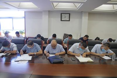 7月20日上午,各分公司生產(chǎn)經(jīng)理、安全科科長(cháng)共20余人,在公司三樓會(huì )議室或奮筆疾書(shū)、或凝神思考,正在緊張答題。這是公司七月份安全生產(chǎn)專(zhuān)題會(huì )考試環(huán)節的一幕。
