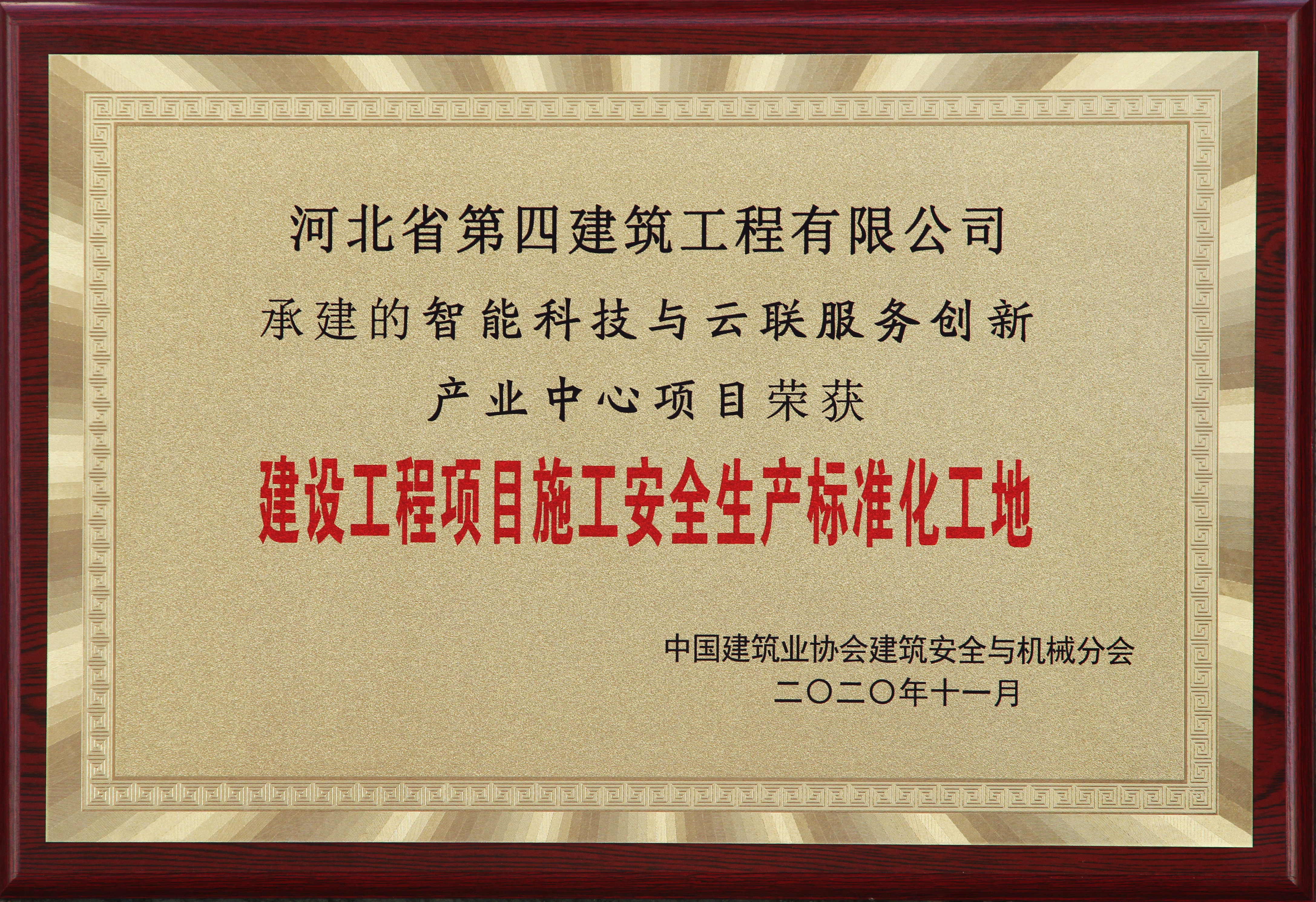 2020年12月23日,中國建筑業(yè)協(xié)會(huì )安全與機械分會(huì )在北京召開(kāi)了建筑業(yè)安全生產(chǎn)管理經(jīng)驗交流會(huì )。會(huì )上表彰了全國建設工程項目施工安全生產(chǎn)標準化工地,公司承建的廊坊智能科技與云聯(lián)服務(wù)創(chuàng )新產(chǎn)業(yè)中心工程獲此榮譽(yù)。這是既2019年河間項目之后,公司再次獲得該榮譽(yù)。