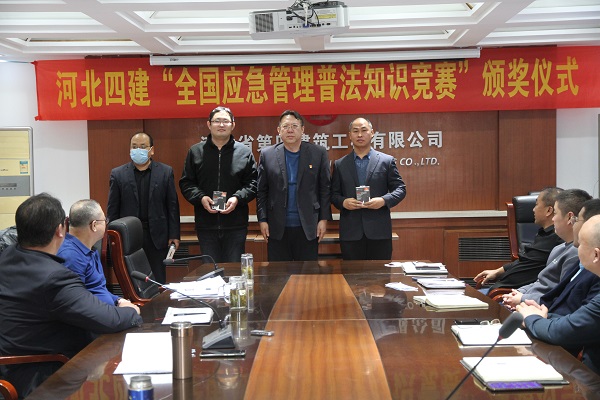 12月20日,公司“第三屆全國應急管理知識普法競賽”頒獎儀式在三樓會(huì )議室舉行,14名取得省市區前百名成績(jì)的優(yōu)秀選手受到表彰。公司黨委副書(shū)記、總經(jīng)理唐志強,總工程師高任清、副總經(jīng)理劉金河為獲獎?wù)叽眍C獎。