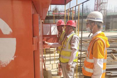 近日,大風(fēng)大雨頻頻光顧現場(chǎng)給塔吊運行帶來(lái)安全隱患,項目部迅速組織專(zhuān)項檢查,對塔吊螺栓、塔身垂直度、基礎是否積水進(jìn)行認真檢查與測量,發(fā)現問(wèn)題馬上采取措施。頻繁的降雨對現場(chǎng)臨電安全是個(gè)巨大考驗,項目部加大對現場(chǎng)臨時(shí)用電設備的檢查力度,用電設備接零、接地嚴格按照規范要求進(jìn)行操作,電纜線(xiàn)路一律采用PVC管保護,避免泡水或磨損造成漏電事故。生產(chǎn)經(jīng)理、安全員、水電工長(cháng)每天對現場(chǎng)電源線(xiàn)路、漏電保護器靈敏度、配電箱進(jìn)行仔細檢查,確保臨電線(xiàn)路和用電設備安全。