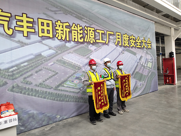會(huì )上,業(yè)主對所有參建單位自開(kāi)工以來(lái)的安全管理情況進(jìn)行了總結,對兩家先進(jìn)集體和兩名先進(jìn)個(gè)人進(jìn)行了表彰。天津一汽樹(shù)脂車(chē)間項目部由于規范嚴謹的管理,在眾多施工單位中脫穎而出,榮獲“五月份安全施工模范單位”錦旗;項目安全員王喜峰榮獲“優(yōu)秀安全員”榮譽(yù)稱(chēng)號。日方課長(cháng)督查佐藤和一汽豐田汽車(chē)總部副總經(jīng)理相馬清親對天津一汽新能源工廠(chǎng)項目部安全工作給予了表彰,項目經(jīng)理苗建偉在會(huì )上做交流發(fā)言,介紹了項目施工安全管理經(jīng)驗。