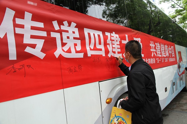 4月28日下午2點(diǎn),在公司門(mén)口,一輛懸掛有“傳遞四建大愛(ài)、共建健康中國”紅色條幅的白色獻血車(chē),和門(mén)口正上方的“河北四建”四個(gè)紅色大字相互映襯,顯得格外醒目;一條由四建職工組成的隊伍“長(cháng)龍”,正在徐徐向前移動(dòng)著(zhù)。此時(shí),由公司黨委宣傳部和團委聯(lián)合組織的以“傳遞四建大愛(ài)、共建健康中國”為主題的迎“五一”慶“五四”無(wú)償獻血活動(dòng),正在有條不紊進(jìn)行中。公司機關(guān)以及附近片區的各單位職工共計48人參與。